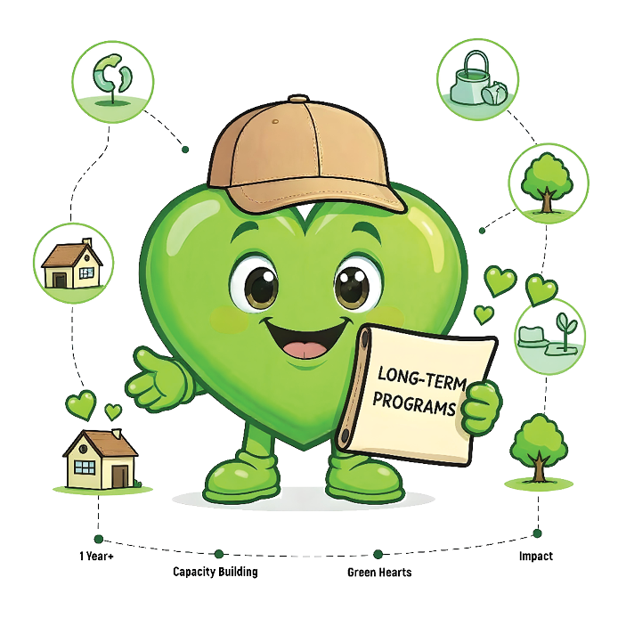 Programs for minimum 1 year focused on capacity building, creating green hearts, enabling circularity and making measurable impact.